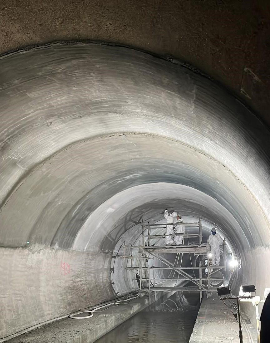 Se trata de la mayor obra de referencia de Fibracim en el ámbito de saneamiento. La intervención abarcó la reparación y refuerzo del revestimiento interior del emisario mediante el sistema de malla de fibra de carbono Sika Carbodur 300 Grid embebida en mortero estructural, garantizando la estanqueidad y la capacidad portante del colector.